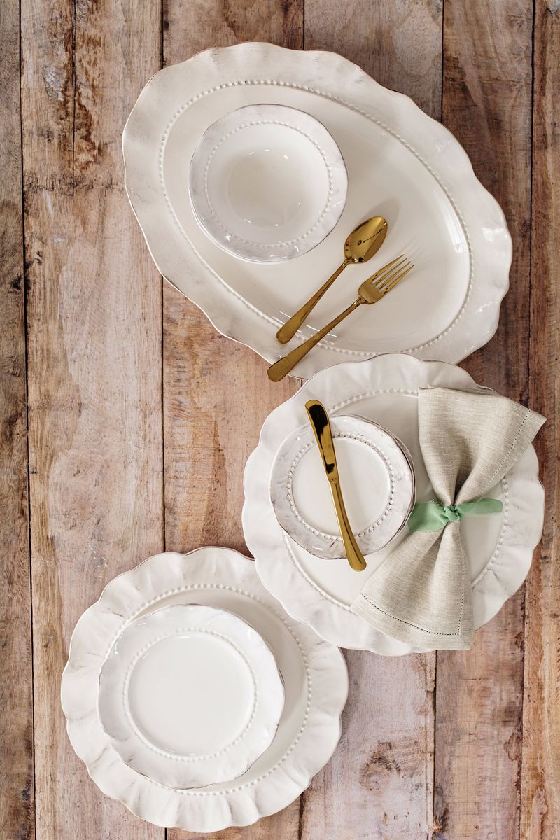 Both relaxed and refined, Giorno captures casually elegant Italian style. A wreath of scalloped edges surround each piece, while the soft ash-tone glaze lends a timeless feel, bringing warmth and character to your table.
