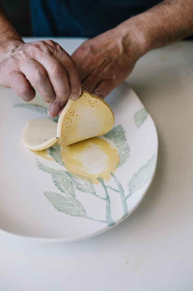 Maestro artisan, Gianluca Fabbro, hones his unique craft of handsponging vibrant, picturesque lemons reminiscent of the Amalfi Coast. One can imagine strolling through the streets of Positano or the Isle of Capri and stopping to soak in the scent of the brightly lit coastline overgrown with robust lemons.